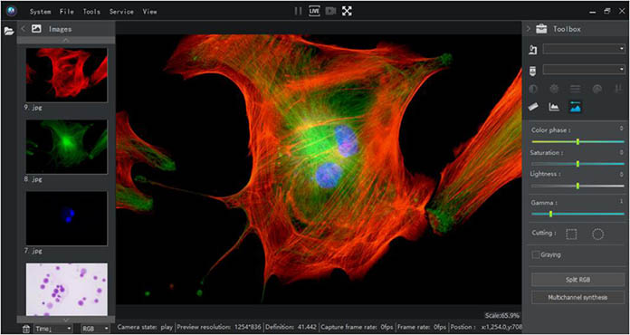 明美顯微數碼測量分析係統MShot Image Analysis System專(zhuan) 業(ye) 用於(yu) 顯微鏡數碼成像應用,軟硬件集成一體(ti) 化係統,以高性能和易用性為(wei) 目標,通過軟件控製相機,完成實時拍照、錄像、測量統計、實時熒光多通道合成、圖像處理等功能,支持Directshow接口攝像頭,支持中文、英文實時切換。