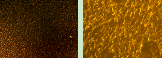 熒光顯微鏡利用特定波長的光激發樣品中的熒光物質,使其發出熒光。在瀝青樣本中,聚合物相如SBS改性劑、橡膠、樹脂、高分子聚合物以及廢膠粉等改性劑在熒光顯微鏡下會(hui) 發出特別明顯的熒光,而瀝青相本身則不激發出任何光。這一特性使得熒光顯微鏡能夠清晰地區分聚合物相和瀝青相。