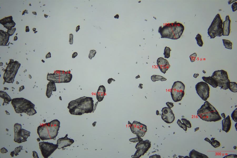 化妝品的添加劑主要有八大類:抗氧化劑、防腐和防黴劑、保濕劑、表麵活性劑、pH調節劑、香精、色素、特殊添加物。大部分添加劑原材料為(wei) 固體(ti) 粉末狀,為(wei) 了確認這些添加劑的形態結構、大小是否滿足要求,是否混有過多的雜質等,便需要金相顯微鏡進行觀察檢測。明美透反射金相顯微鏡MJ31,視場大、成像清晰且對比度好,支持明場和偏光的觀察方式用於(yu) 化妝品添加劑觀察檢測。搭配明美2000萬(wan) 像素、1英寸大靶麵芯片的顯微數字相機MDX10,和明美自主研發的顯微成像分析軟件“MShot Image Analysis System”進行測量分析,能夠清晰地觀察到化妝品添加劑的細節及精確地測量出它們(men) 的大小。