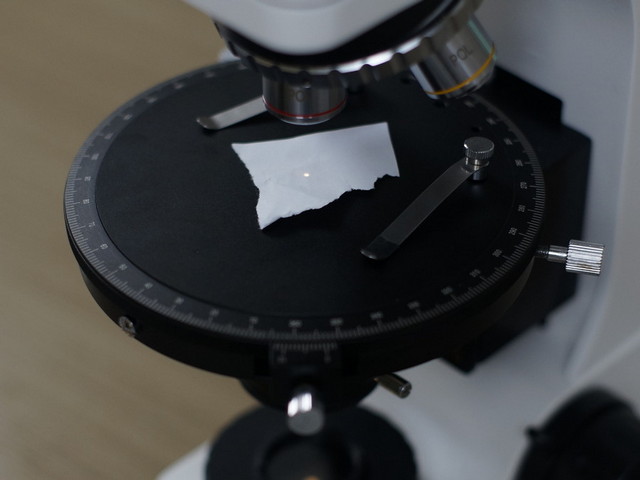①起偏器與(yu) 檢偏器:產(chan) 生特定偏振方向的偏振光,偏振方向可調且帶刻度。可以實現單偏光觀察、正交偏光觀察,用於(yu) 判斷澱粉等雙折射晶體(ti) 等應用。