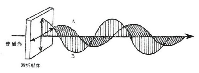 晶體(ti) 在光學性質上具有雙折射性,也稱各向異性,即光線在通過晶體(ti) 時,分解成兩(liang) 種振動方向互相垂直且傳(chuan) 播速度不等的偏光,如上圖光經過晶體(ti) (雙折射體(ti) )後,被分解成A光和B光兩(liang) 個(ge) 偏振光,他們(men) 方向相互垂直,但相位不同,其差異與(yu) 雙折射體(ti) 厚度相關(guan) 。